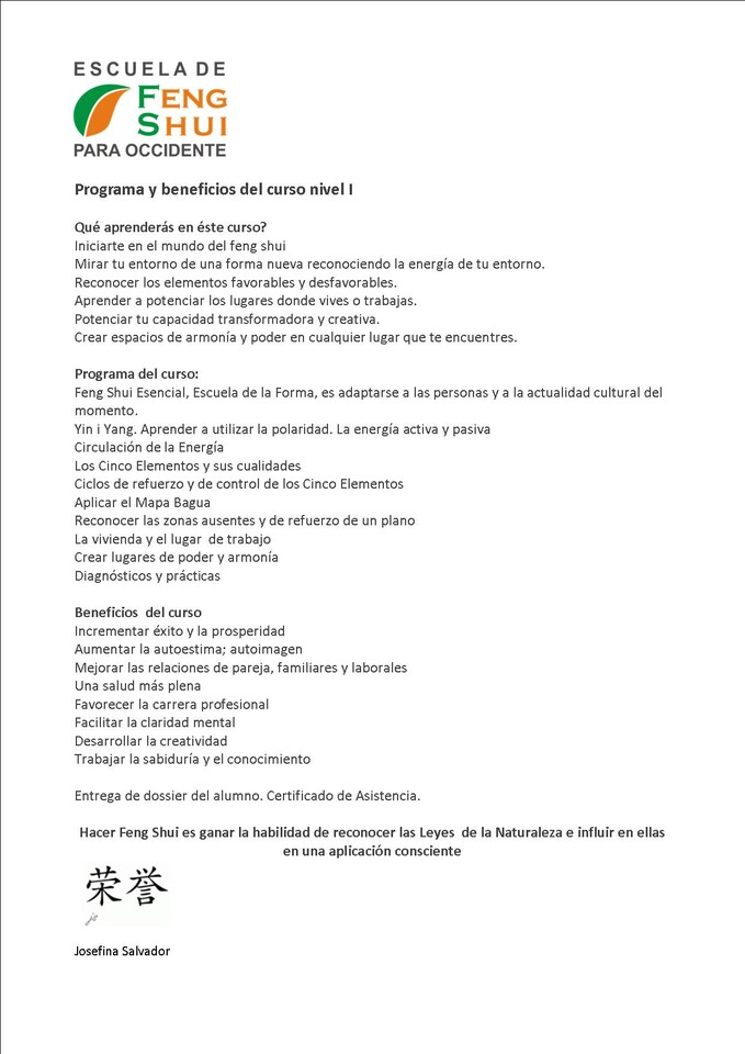 Información: jsalvador@fengshuiparaoccidente.com - 647 67 82 93